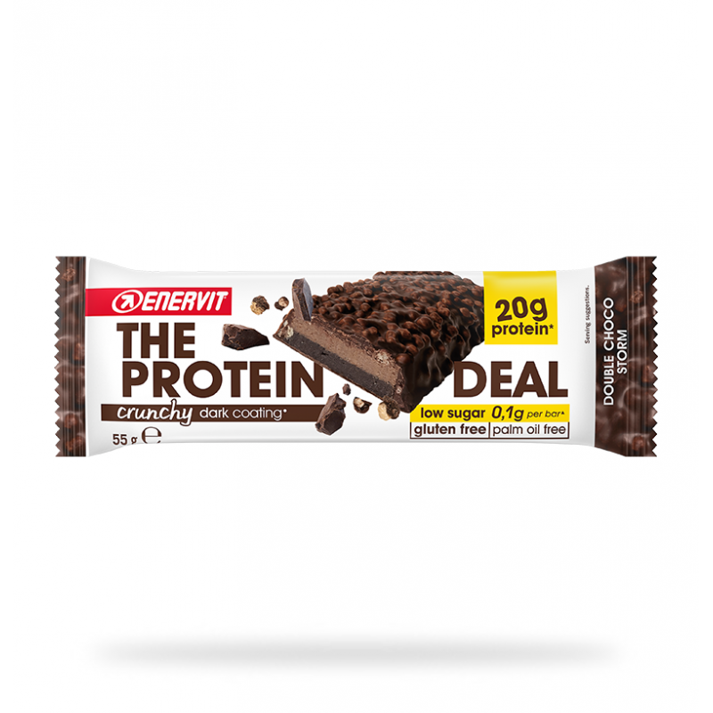 The Protein Deal Crunchy es una barrita de proteínas que te libera del sentimiento de culpa. Su composición baja en azúcares es una alternativa idónea a los snacks convencionales, una recarga de proteínas durante un día ajetreado.