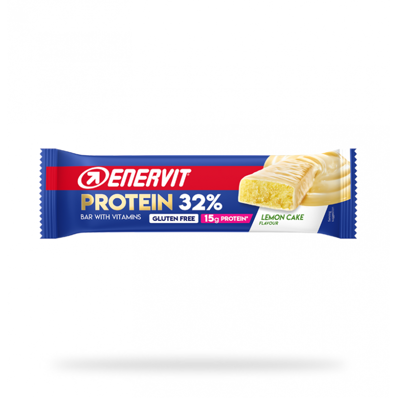 La barra proteica Enervit Protein Bar 32% Lemon Cake proporciona a tus músculos nutrientes valiosos gracias a una composición única de proteínas aisladas de la leche y de la soja, con vitaminas.