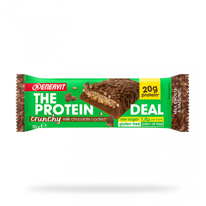 Ingredientes: Cobertura de chocolate con leche y edulcorante (33 %) (edulcorante: maltitoles, leche entera en polvo, pasta de cacao, suero en polvo, emulsionante: lecitinas) – Proteínas de leche (21 %) – Edulcorante: maltitoles – Colágeno hidrolizado (8,2 %) – Humectante glicerol – Copos de soja (5 %) - Manteca de cacao – Proteína de soja (3,1 %) – Aceite de girasol – Agente de carga: polidextrosa – Proteína de leche en copos (1,5 %) – Edulcorante: sorbitoles – Granos de avellana naturales (1 %) – Cacao desgrasado (1 %) – Aroma natural – Emulsionante: lecitinas. Puede contener trazas de otros frutos secos, cacahuetes y semillas de sésamo.