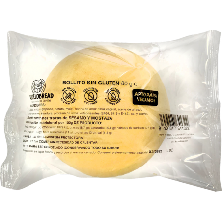Ingredientes: Agua, almidones (tapioca, patata, maíz), harina de arroz, fibra vegetal, aceite de girasol, trigo sarraceno, levadura, proteína de arroz, estabilizantes (hidroxipropilmetilcelulosa, goma xantana y goma guar), sal y aromas.