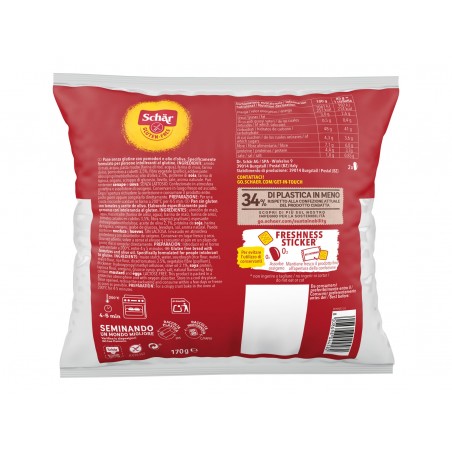 Ingredientes: almidón de maíz, agua, masa madre 13% (harina de arroz, agua), harina de maíz, harina de arroz, tomates cortados en cubitos 3,5%, fibra vegetal (psyllium), espesante: hidroxipropilmetilcelulosa; aceite de oliva 2,1%, proteína de soja, harina de tapioca, orégano, jarabe de glucosa, levadura, sal, aroma natural. Puede contener mostaza. SIN LACTOSA.
