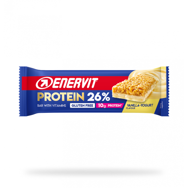 Enervit Protein Bar 26% Vaniglia-Yogurt es la barrita proteica que también te brinda un momento de puro placer, gracias a su dulce base de chocolate blanco y al fresco sabor del yogur.