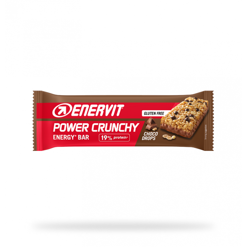 Enervit Power Crunchy Choco es la sabrosa y crujiente barrita energética*, a base de copos de soja, avena y con gotas de intenso chocolate negro, que prolonga tus ganas de seguir adelante.