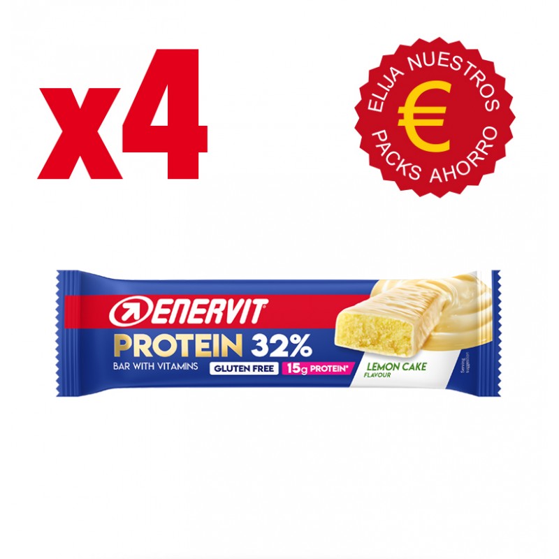 La barra proteica Enervit Protein Bar 32% Lemon Cake proporciona a tus músculos nutrientes valiosos gracias a una composición única de proteínas aisladas de la leche y de la soja, con vitaminas.